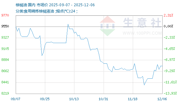 12月3日生意社棕榈油基准价为8670.00元/吨